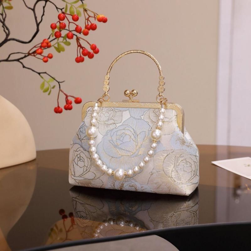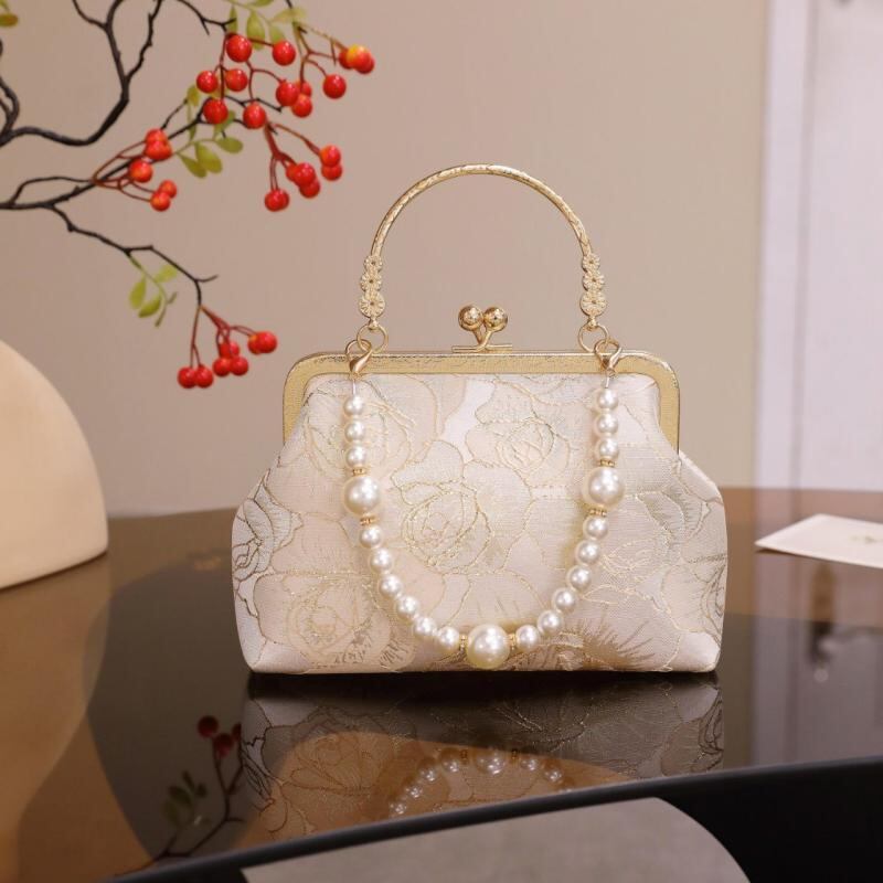 バッグ レディース ハンドバッグ ショルダーバッグ クロスボディ パーティー 鞄 スクエア型 質感 中華風 レトロ パールチェーン チャイナドレス 漢服