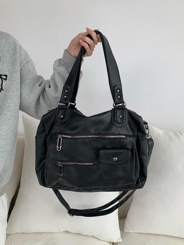 バッグ メンズ レディース 大容量 多機能 レトロ ヴィンテージ トートバッグ ショルダーバッグ 斜め掛け鞄 ハンド 3way PUレザー 合皮 通勤 通学 旅行 出張 ビジネス デイリーユース ブラック ブラウン