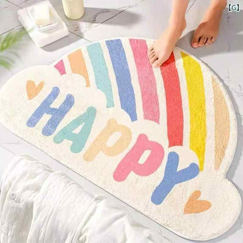 フロアマット カートゥーン柄 半円形 滑り止め バスマット 玄関マット リビング ラグ 寝室 家庭用 ふわふわ フェイクカシミア ポリエステル 吸水 変形マット かわいい アニマル柄