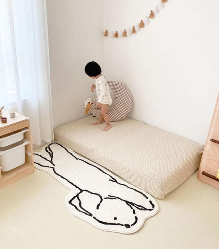 ラグ かわいい キャラクター 犬柄 カシミヤ調 ポリエステル 厚手 短毛 変形 リビング 寝室 子供部屋 ベッドサイド フロアマット