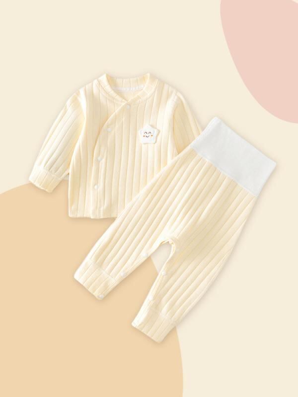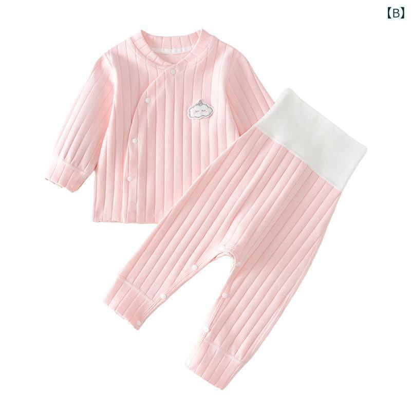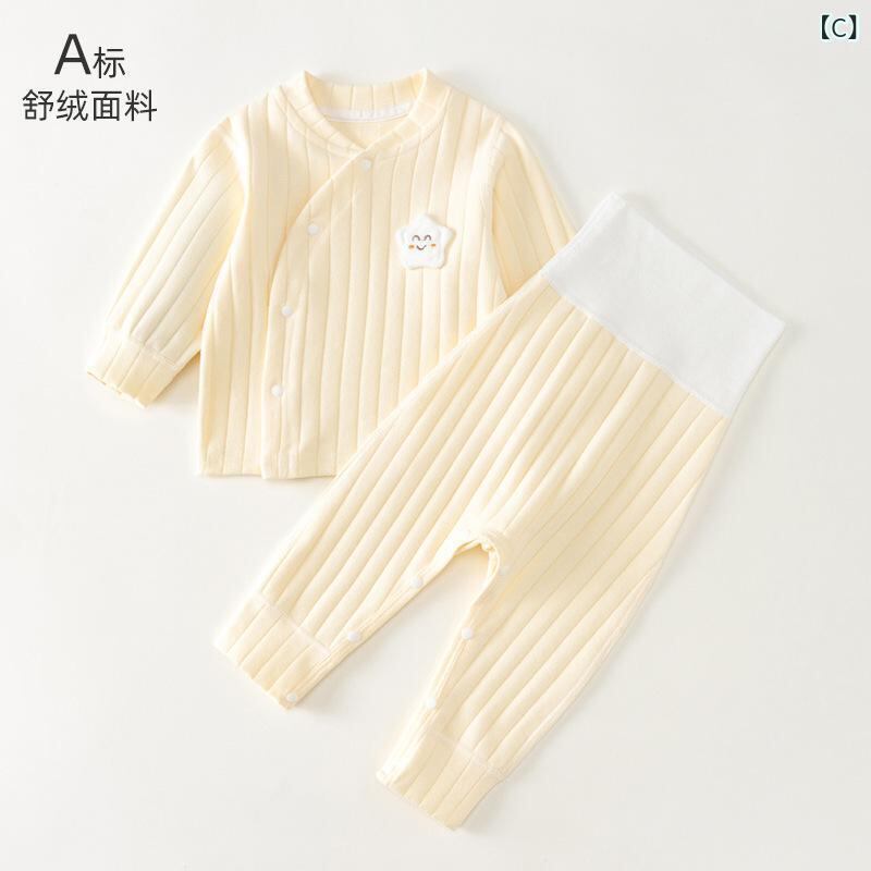 ベビー 肌着上下セット 赤ちゃん用 秋冬 保温 コットン 綿100% ソフト起毛 ハイウエスト 腹巻付き おむつ対応 ルームウェア パジャマ 丸首 男女兼用