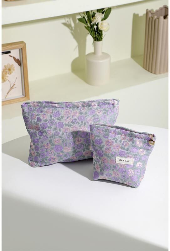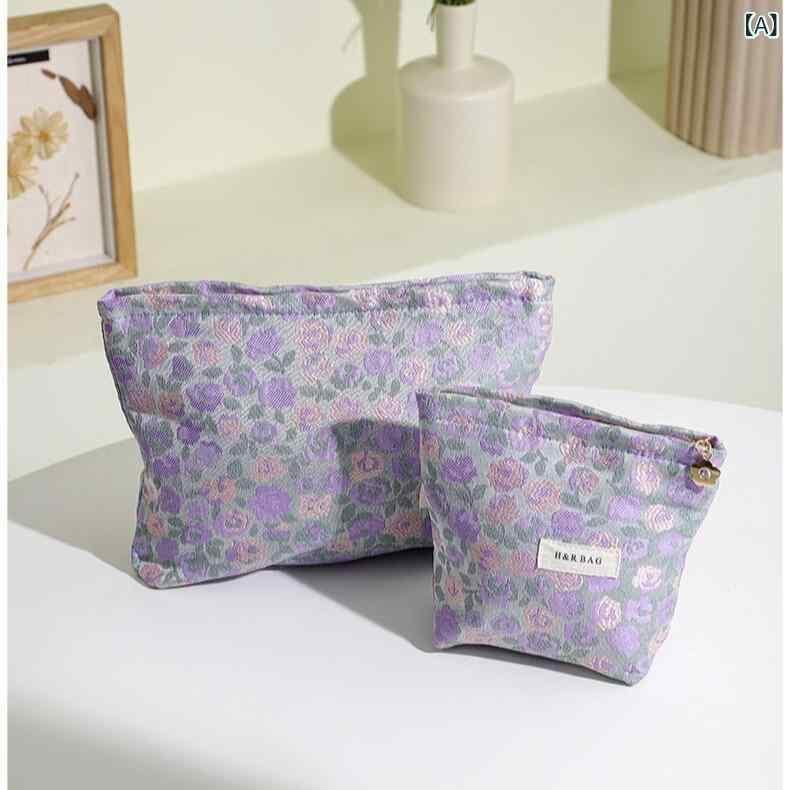 コスメポーチ レディース 韓国風 ナチュラル おしゃれ 大容量 メイク収納 トラベル用 クラッチバッグ コットン かわいい フェミニン SNS映え パープル