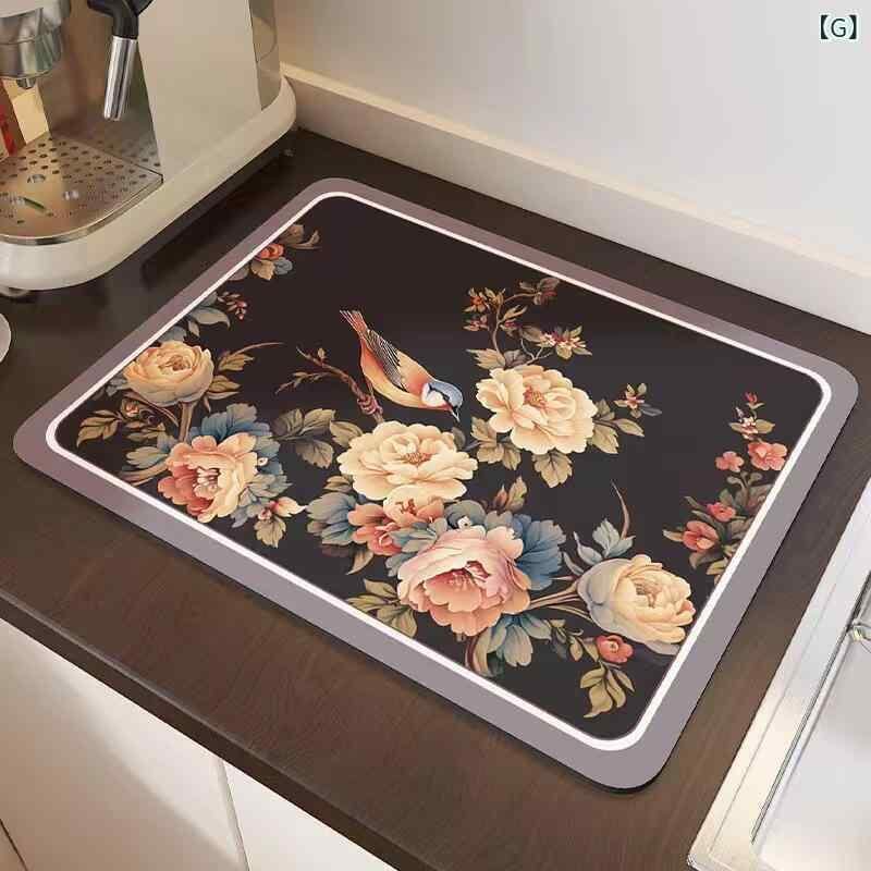 珪藻土マット 新中華風 レトロ 吸水 速乾 滑り止め キッチン 食卓 浴室 洗面所 カウンター バスマット かわいい動物柄 花鳥柄 長方形