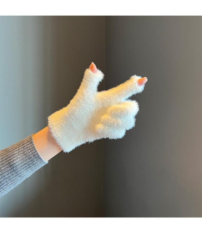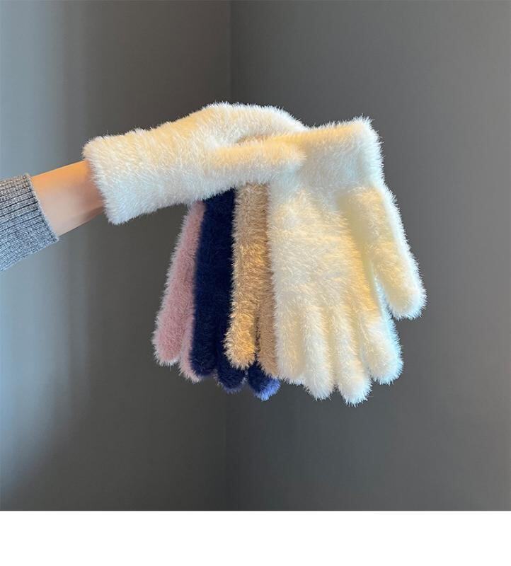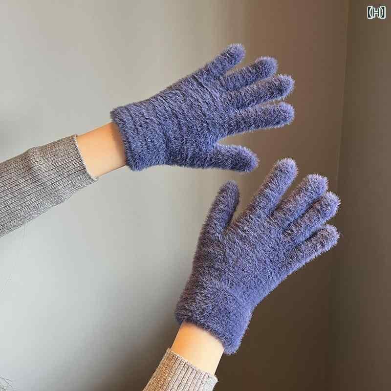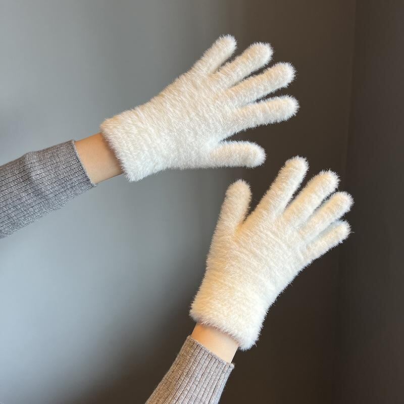 手袋 レディース ラビットファー調 フェイクファー モコモコ ふわふわ ミンクベルベット 裏起毛 防寒 保温 暖かい 5本指 指あり 滑り止め かわいい インスタ風 自転車 サイクリング 通学 学生 冬物 グローブ