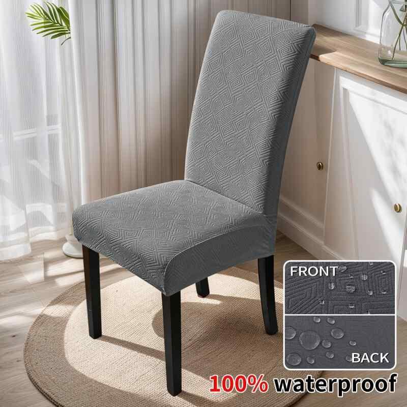 チェアカバー TPUコーティング 防水 ジャガード 伸縮性 無地 ホテル ダイニング ハイバック ポリエステル スパンデックス 幾何学模様 アメリカンスタイル 厚手