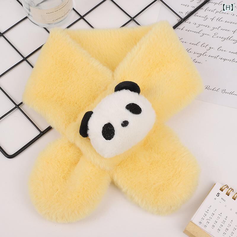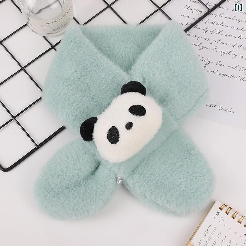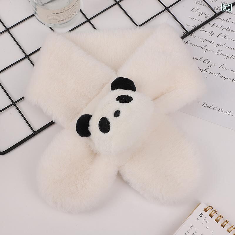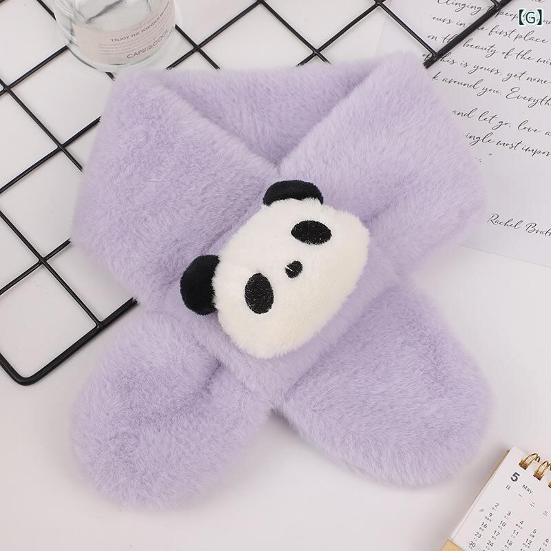 マフラー キッズ 子供用 秋冬 パンダ キャラクター フェイクファー もこもこ ネックウォーマー 暖かい 防寒 保温 首元カバー かわいい 無地 ポリエステル 通園 通学 普段使い ふわふわ やわらか