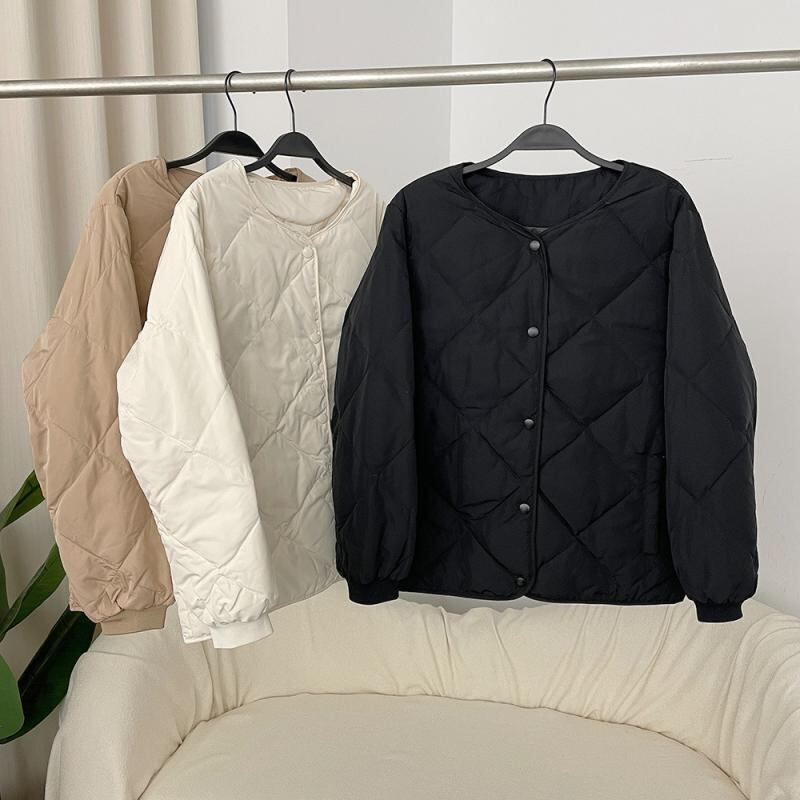 ダウンジャケット レディース ショート丈 軽量 薄手 ホワイトダックダウン ゆったり キルティング ラウンドネック 都市カジュアル タウンユース 秋冬 アウター スナップボタン