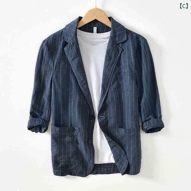 テーラードジャケット メンズ ライトラグジュアリー カジュアル 七分袖 綿麻 リネンブレンド 通気性 ゆったり ビジネス 通勤 普段使い ブレザー アウター