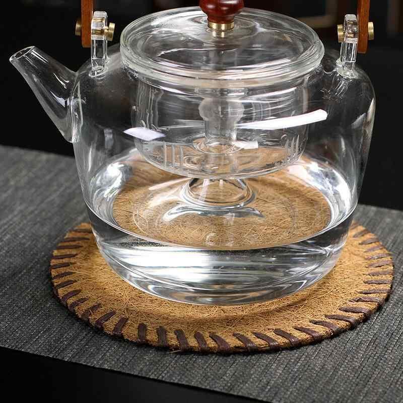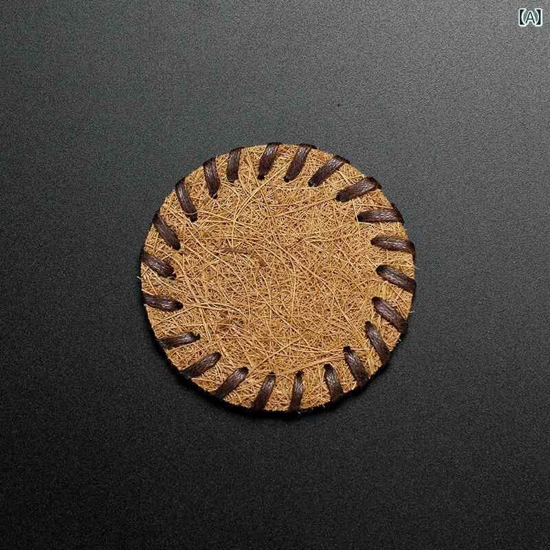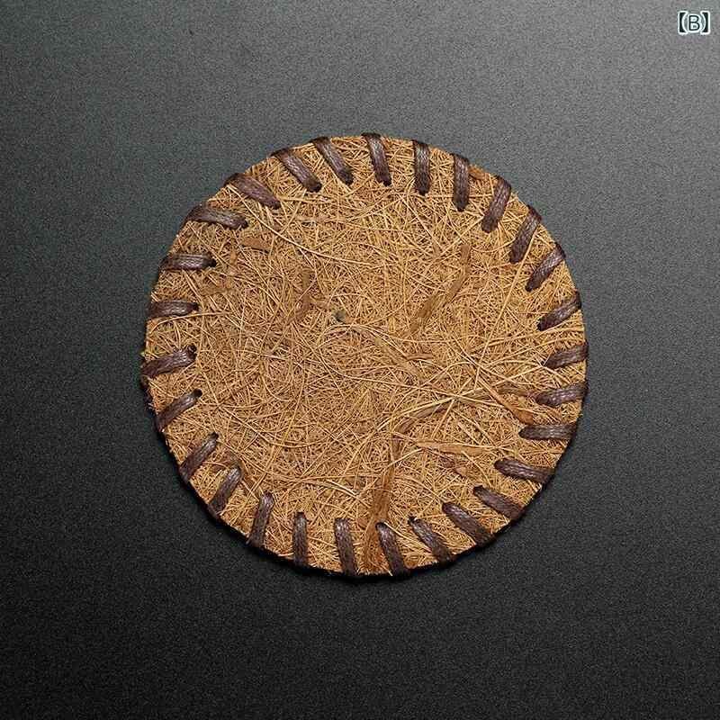 コースター 茶敷き 天然ヤシ繊維 シュロ毛 パーム繊維 編み込み ポットマット 急須敷き 断熱 耐熱 卓上保護 ダークブラウン 和風 アジアン