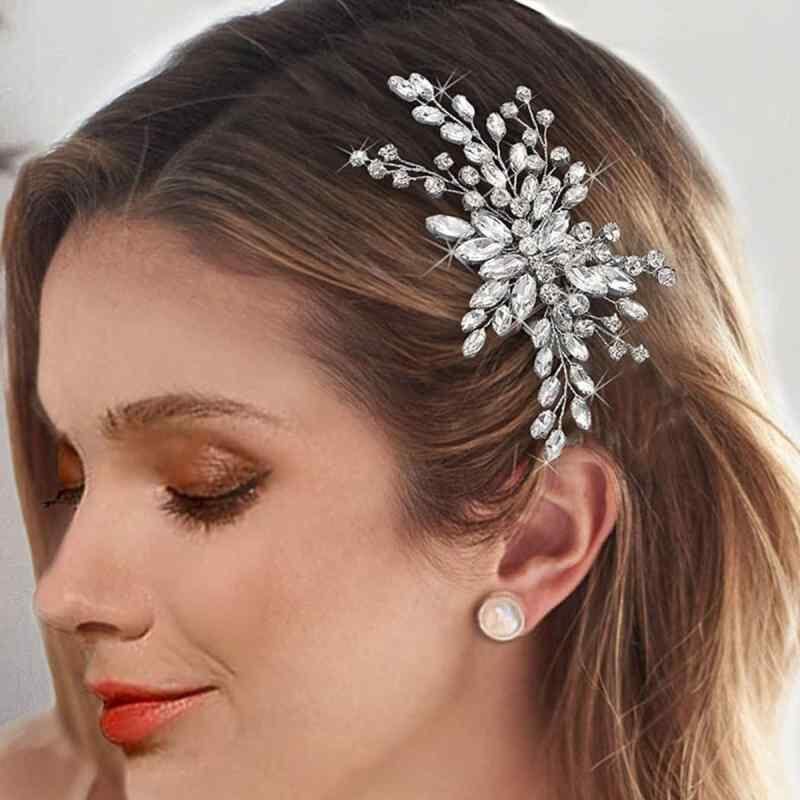 ヘッドドレス レディース シルバー メタル ガラス ラインストーン 新婦 ブライダル ウェディング 結婚式 披露宴 二次会 パーティー 前撮り 髪飾り ヘアコーム サイドコーム イベント 高級感