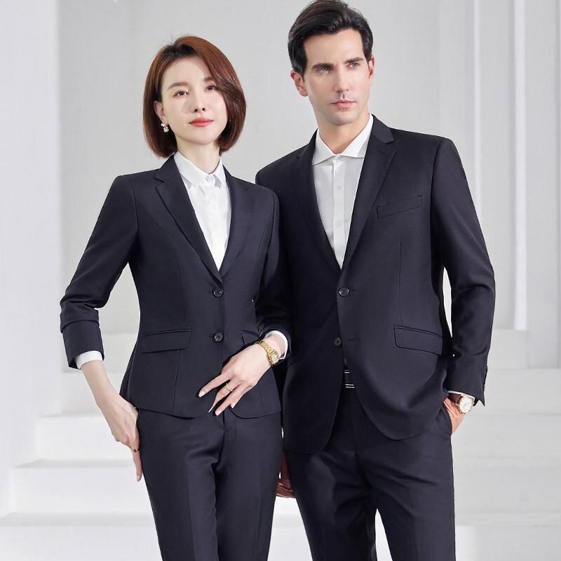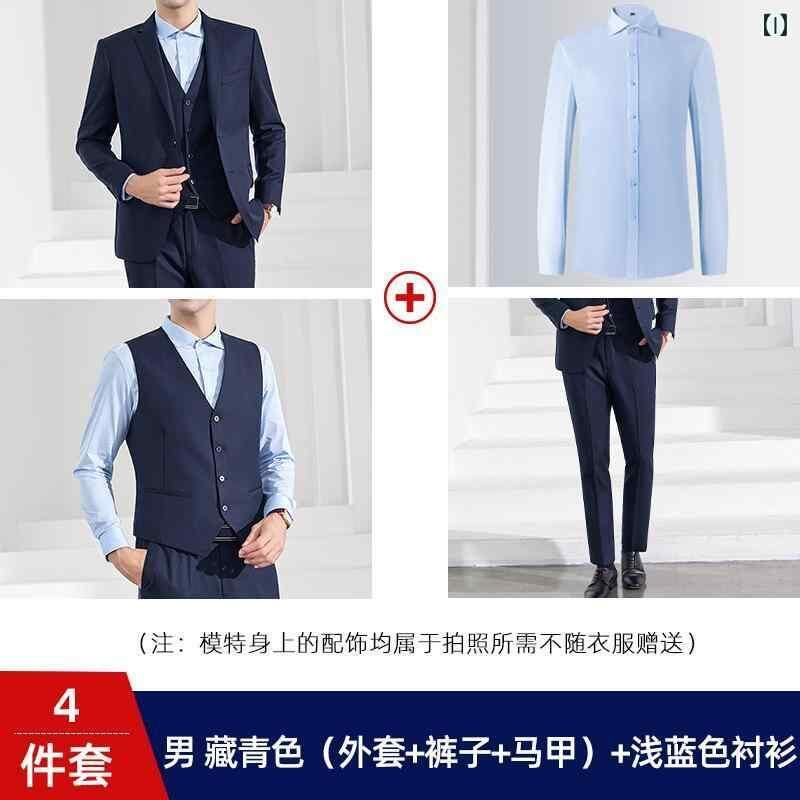 スーツ メンズ レディース 男女兼用 高級感 ウール 羊毛 紺色 ダークネイビー スリムフィット 細身 スリーピース ベスト付き セットアップ 上下セット ビジネス フォーマル 礼服 セレモニー 通勤 オフィス ワークスタイル 春秋