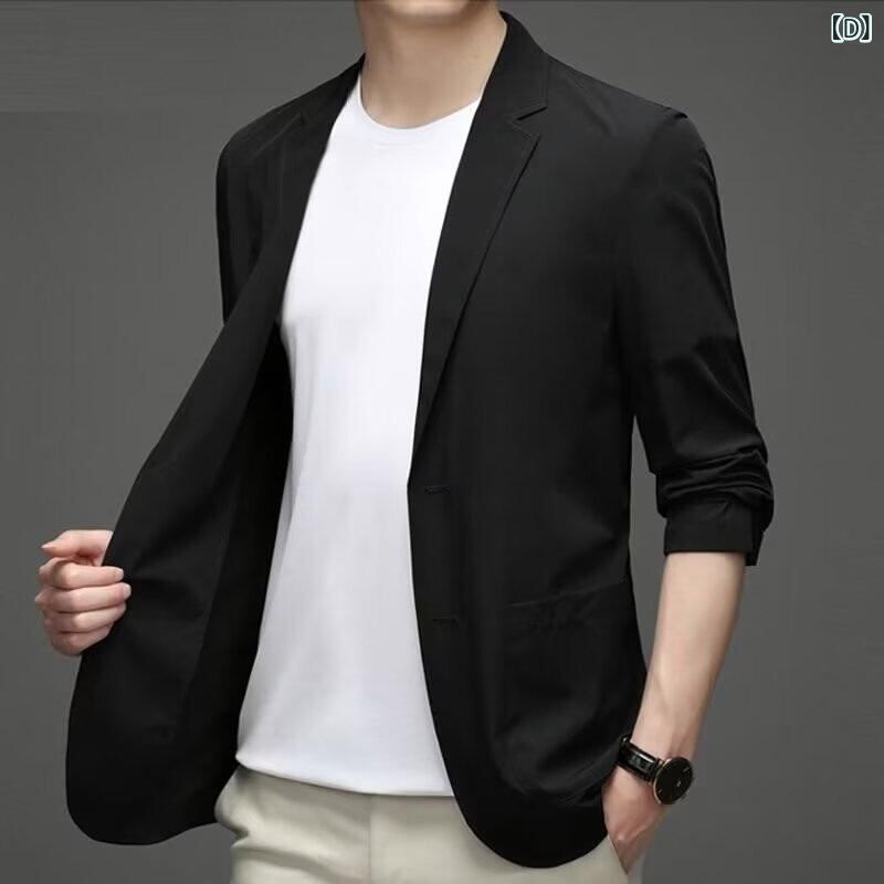 テーラードジャケット メンズ 春夏秋 接触冷感 UVカット 日焼け対策 極薄 薄手 軽量 カジュアル スリムフィット 2つボタン シングルブレスト アセテート 羽織り