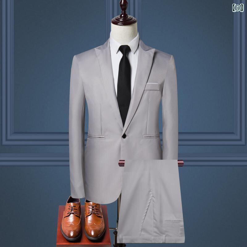 スーツ メンズ 韓国風 ビジネス カジュアル フォーマル オフィス 結婚式 披露宴 パーティー 混紡素材 ノッチドラペル スリムフィット センターベント オールシーズン セットアップ
