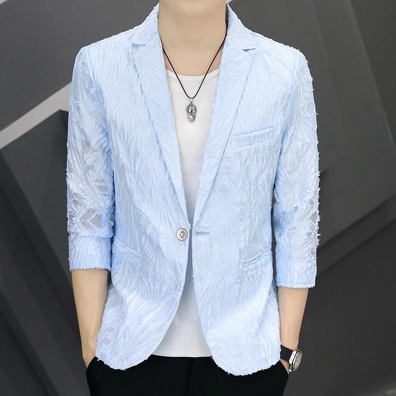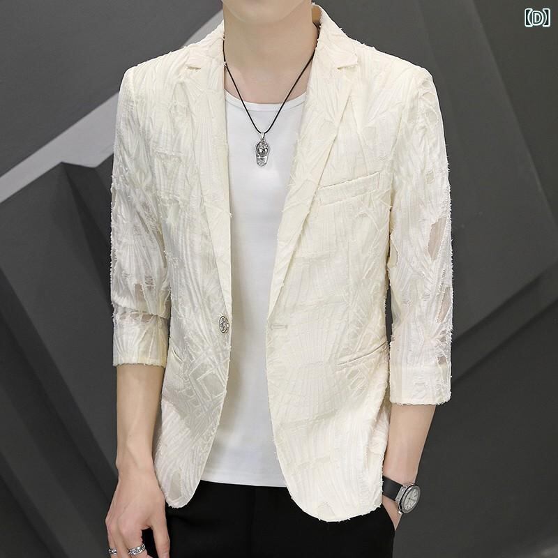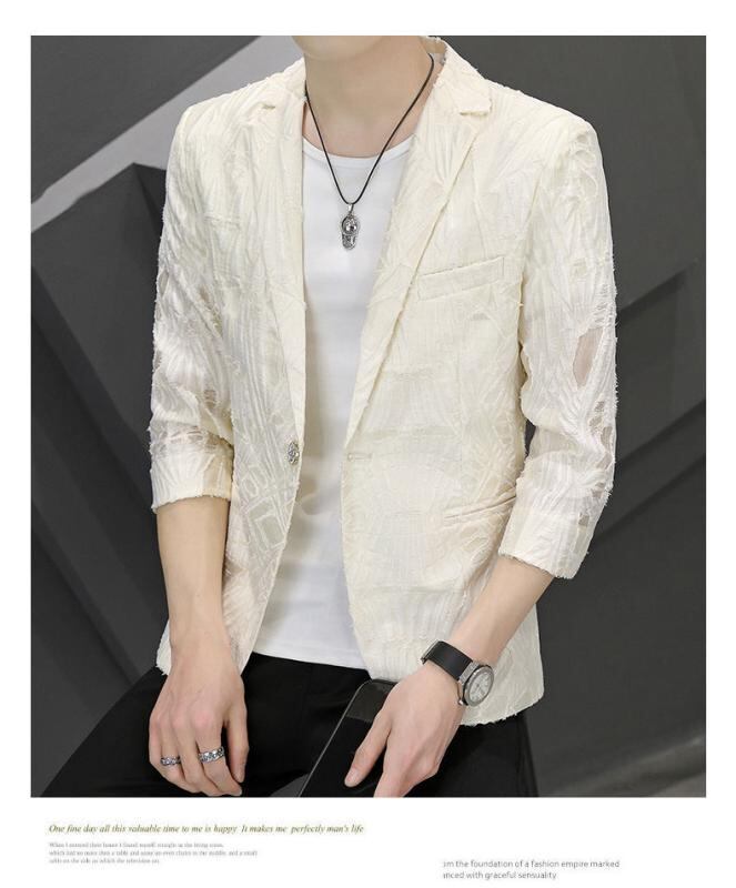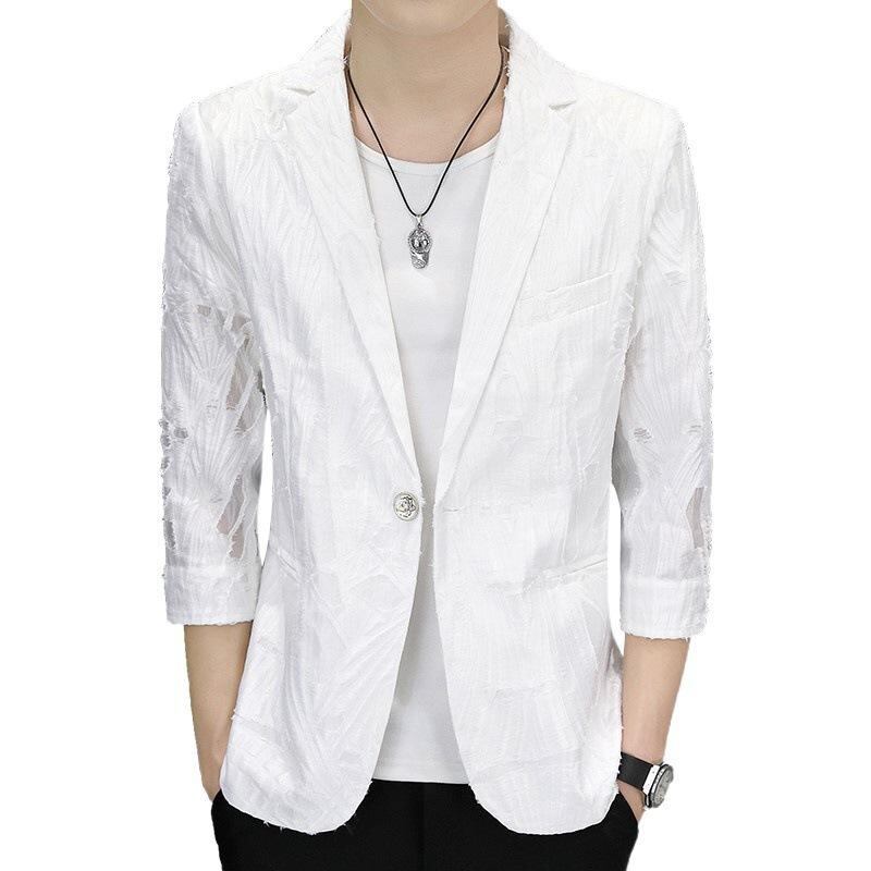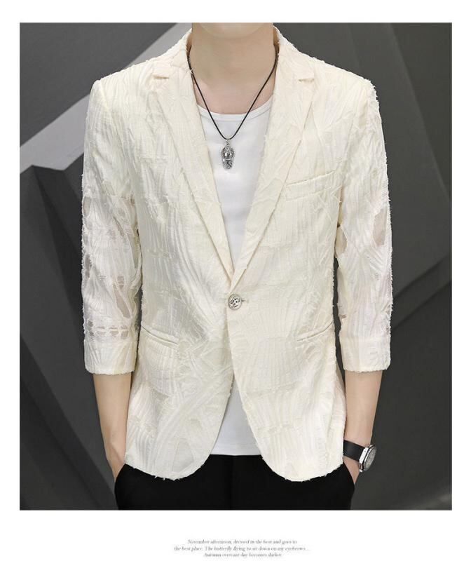 アウター メンズ 夏 テーラードジャケット 韓国風 透かし編み メッシュ ピークドラペル 軽量 通気性 スリムフィット おしゃれ カジュアル 普段使い ホワイト ブラック アセテート混紡