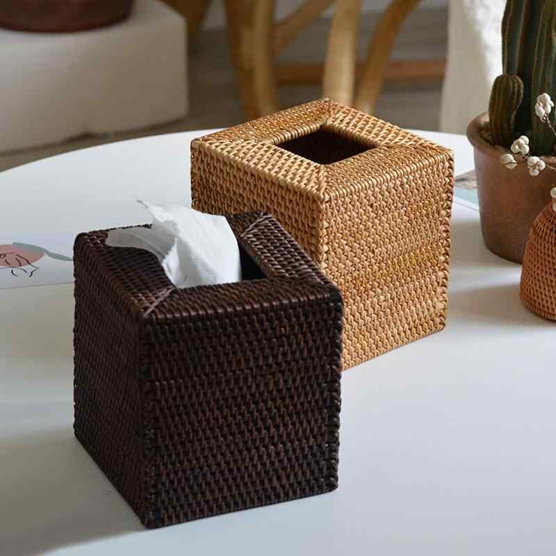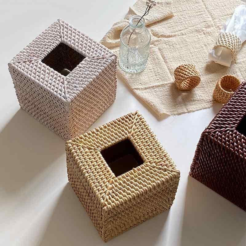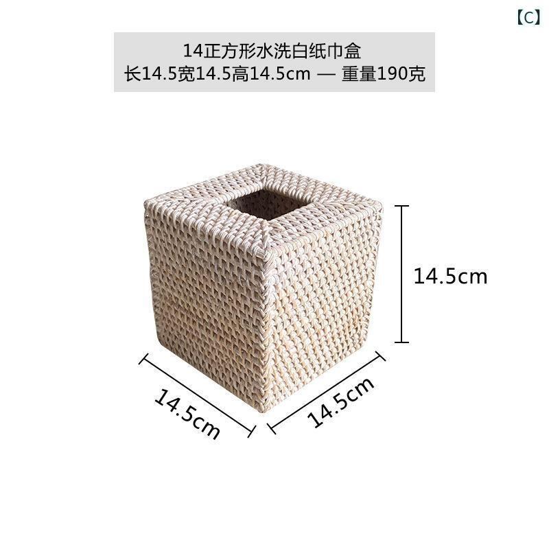 ティッシュケース 北欧風 藤編み スクエア型 レトロ おしゃれ 卓上 リビング ダイニング 車内 多目的収納ボックス 正方形 天然素材 高級感