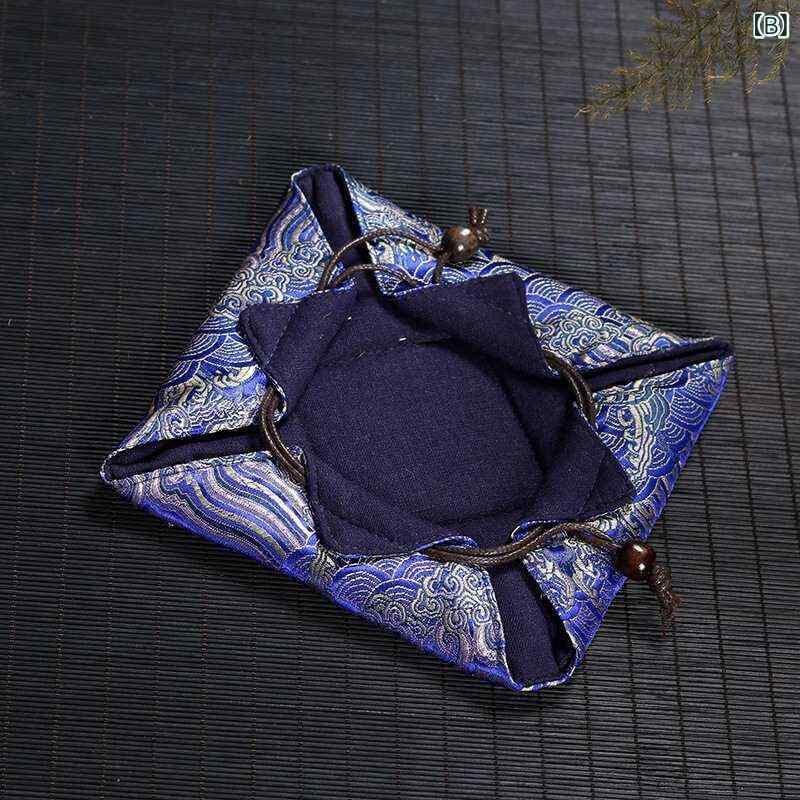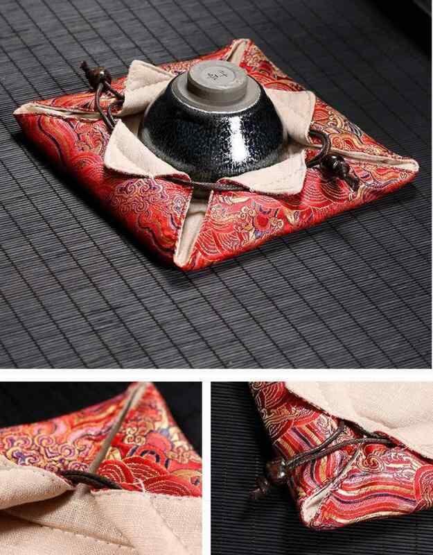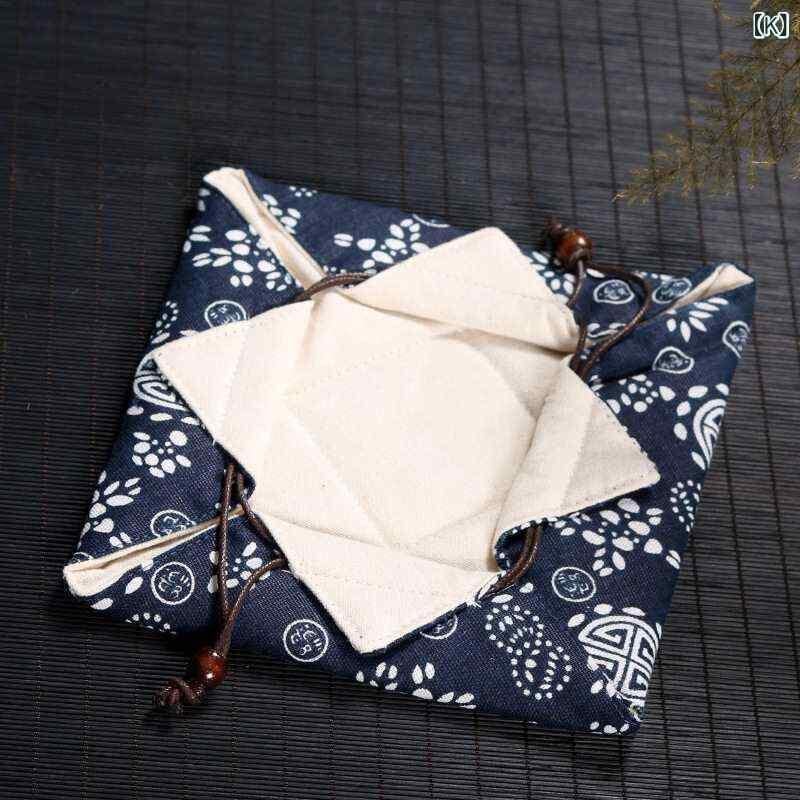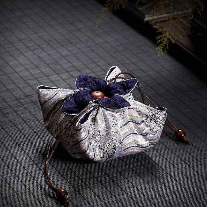 収納袋 携帯用 旅行用 綿麻 コットンリネン 厚手 ハンドメイド 茶器セット 茶道具 中華風 茶碗 急須 蓋碗 巾着ポーチ 布製ケース