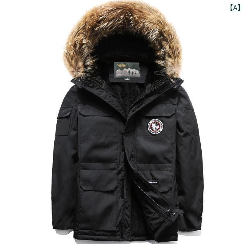 中綿ジャケット メンズ 男性用 取り外し可能フード ファー付き ジップアップ ロング丈 ミドル丈 厚手 防寒 多ポケット 迷彩柄 ポリエステル中綿 普段使い デイリーユース カジュアル 秋冬 アウター コート