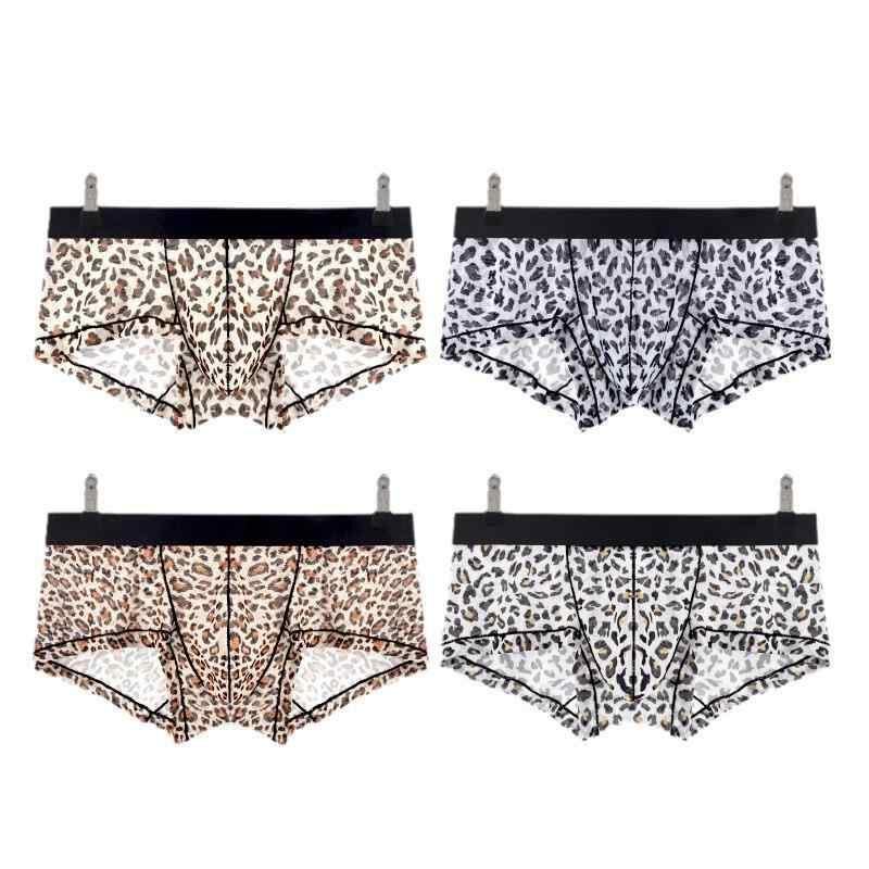 ボクサーパンツ メンズ 男性用 ヒョウ柄 超薄型 ローライズ セクシー 速乾 通気性 接触冷感 ポリエステル インナー ブラウン ブラック ベージュ オレンジ系 普段使い 快適