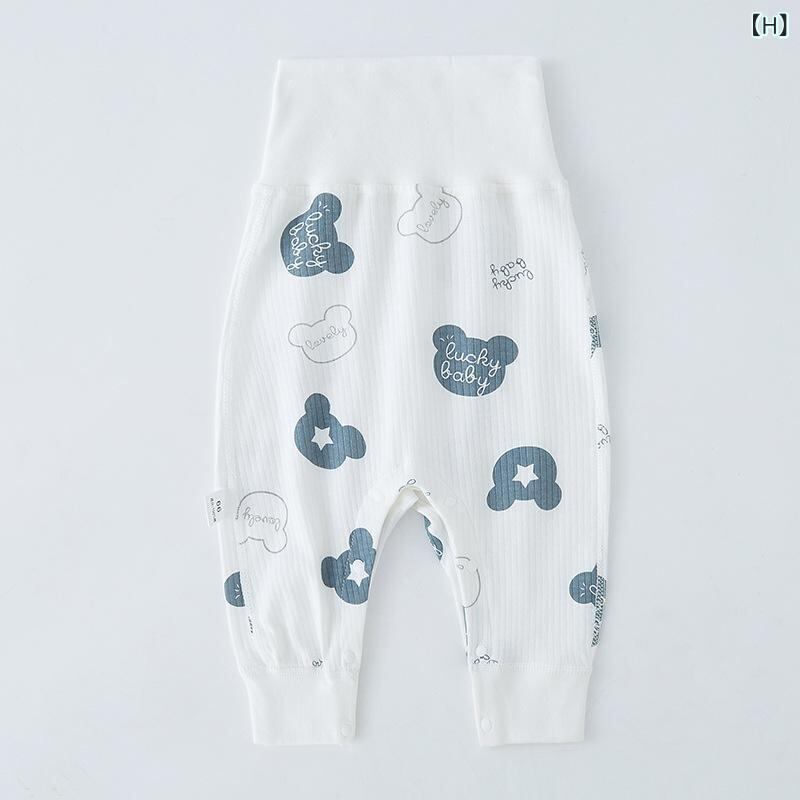 ベビーパンツ 赤ちゃん用 ハイウエスト 腹巻付き スナップボタン 開閉股 ロング丈 レギンス パジャマ 肌着 綿 コットン 縫い目なし 新生児 男女兼用 通年 ゴムウエスト カジュアル ベーシック 肌に優しい