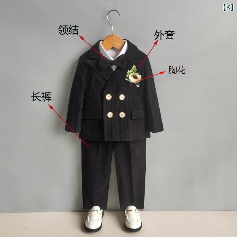 スーツ 男の子 フォーマルウェア キッズ 礼服 ダブルブレスト 厚手 コーデュロイ生地 秋冬 ブリティッシュスタイル ストライプ 無地 発表会 舞台衣装 入学式 卒業式 結婚式 長袖 おしゃれ 上品