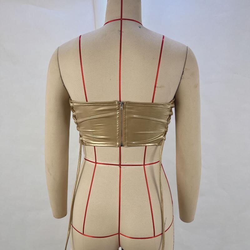 ベアトップ レディース 春夏 欧米ストリート系 セクシー 肌見せ メタリック 光沢 ビスチェ ボーン入り スリムフィット 伸縮 ショート丈 トップス ポリエステル ダンス 衣装 イベント