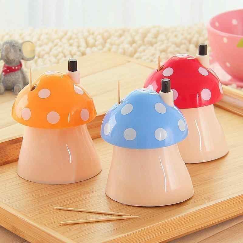 爪楊枝入れ きのこ型 プッシュ式 自動供給 家庭用 卓上用 ダイニング リビング プラスチック製 おしゃれ かわいい ヨーロピアン 爪楊枝ケース 楊枝立て