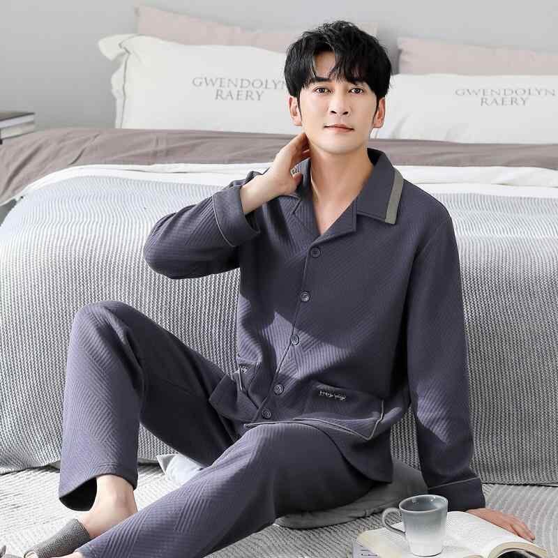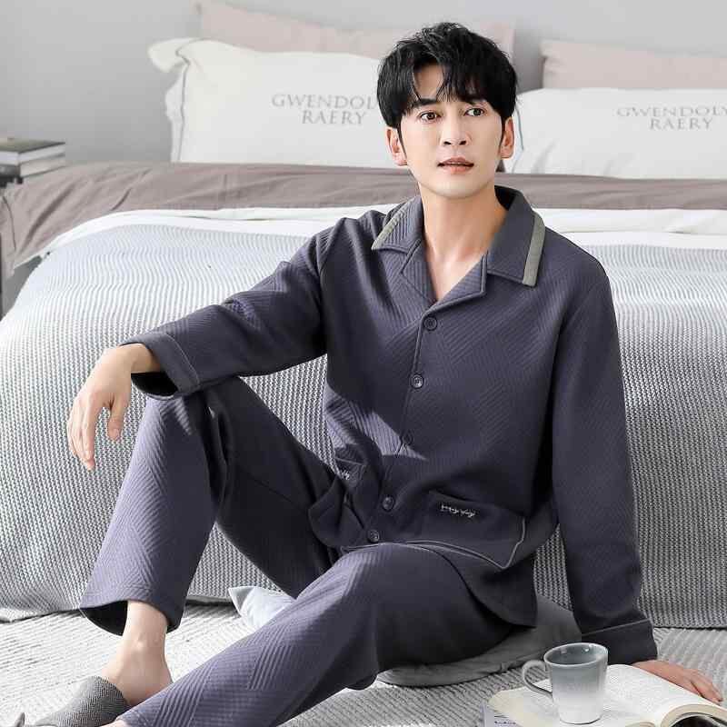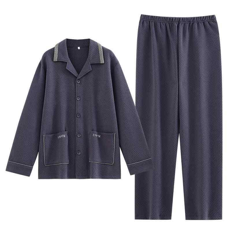 パジャマ メンズ 男性用 襟付き 3層構造 キルティング 厚手 コットン100% 長袖 長ズボン ルームウェア 部屋着 保温 暖かい 快適 ワンマイルウェア 秋冬