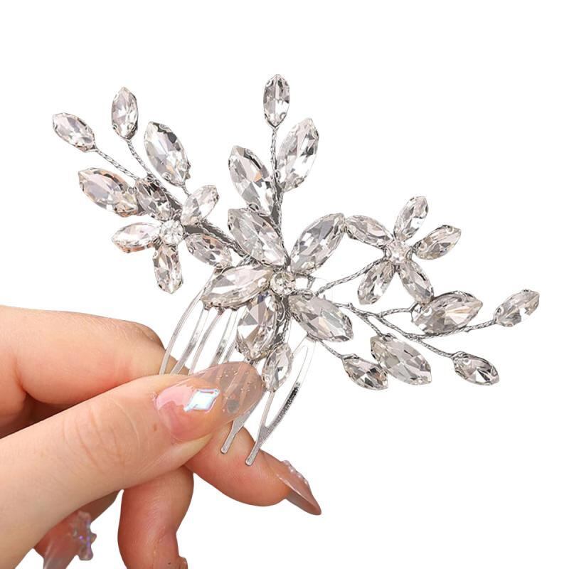 ヘッドドレス レディース ブライダル 結婚式 ハンドメイド エレガント 花 フラワー ラインストーン 髪飾り ヘアコーム アップヘア まとめ髪用 合金製 シルバーカラー ウェディングアクセサリー