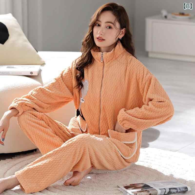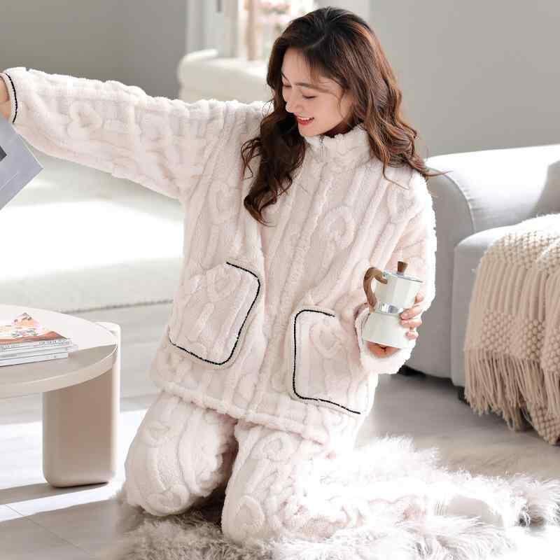 パジャマ レディース 女性用 秋冬 フランネル 裏起毛 厚手 保温 あったか ルームウェア 部屋着 上下セット セットアップ 長袖 ロングパンツ 快適 シンプル カジュアル