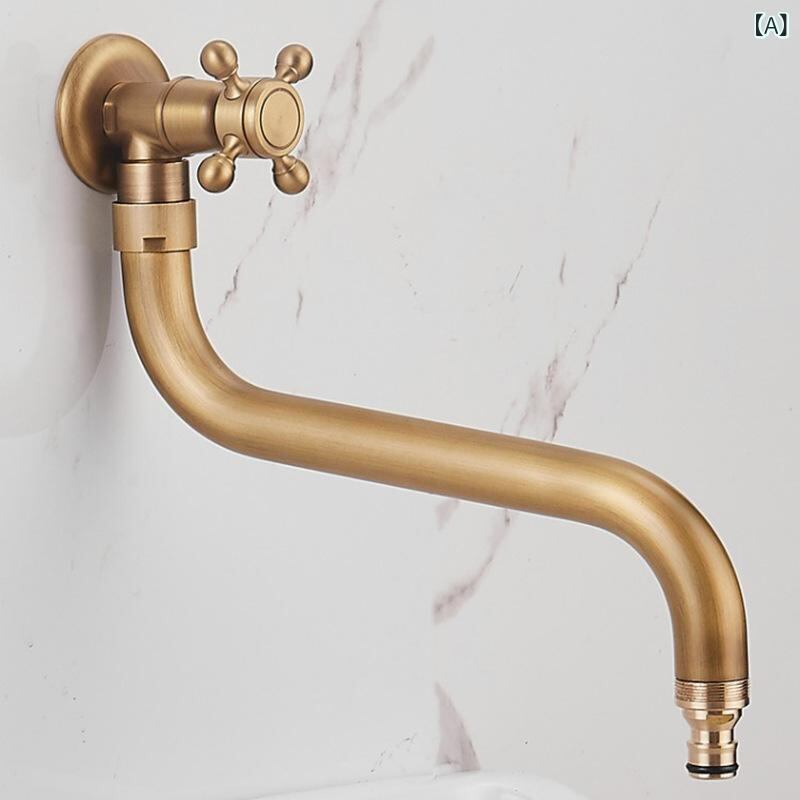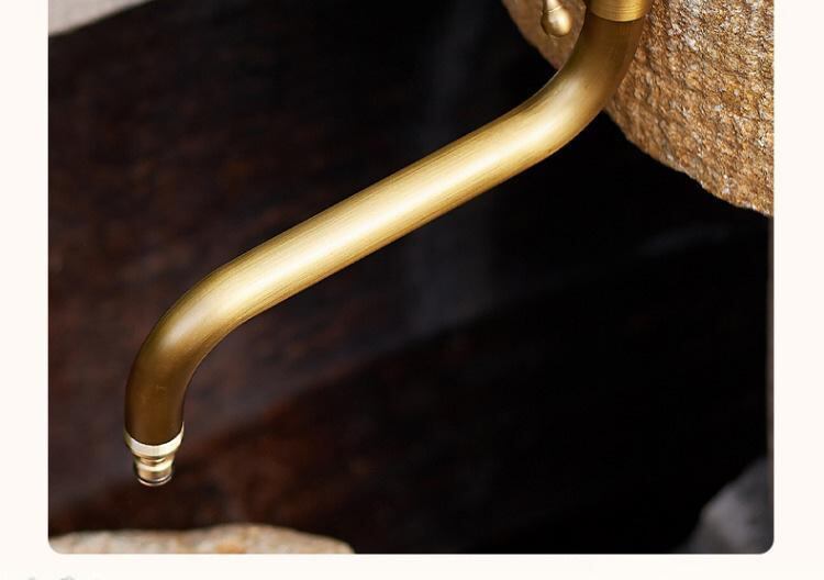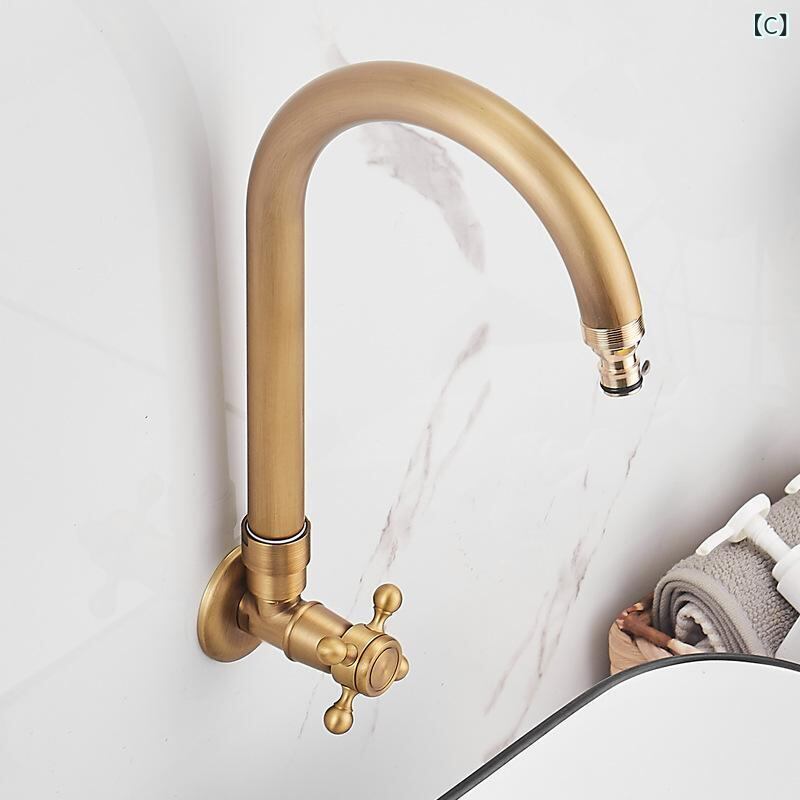 蛇口 レトロ アンティーク 壁付け 単水栓 冷水専用 真鍮製 ロングタイプ 屋外 庭 ガーデン 洗面台 手洗い 凍結防止機能
