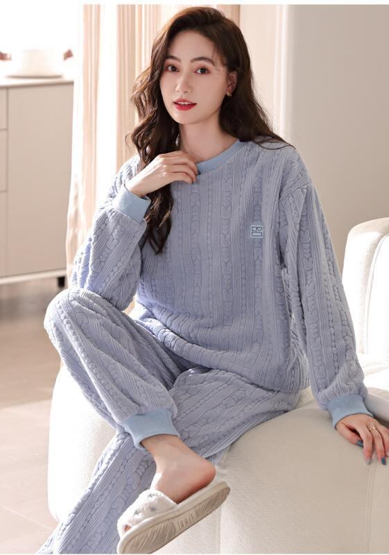 パジャマ レディース 女性用 コーラルフリース フランネル 厚手 裏起毛 プルオーバー 上下セット 保温 防寒 秋冬 ルームウェア 外出着 部屋着 カジュアル 快適 通気性 長袖 長ズボン ポリエステル