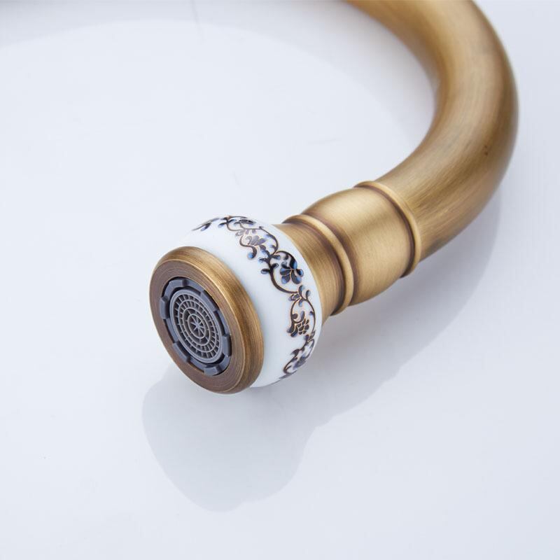 ・機能カテゴリ: 混合水栓・バルブタイプ: セラミックバルブ・モデル: 冷温水栓・設置タイプ: 卓上式・素材: 真鍮・使用温度: 冷温・公称圧力: 常圧・給排水管直径: 1/2インチ・用途: キッチン水栓・構造: シングルレバー・仕様: アンティーク調キッチン青花磁器水栓(大湾管)、アンティーク調キッチン青花磁器水栓(L字管)・開閉方式: リフトアップ式・重量: 2kg以下・表面加工: ヘアライン仕上げ・スタイル: モダンミニマル・シリーズ: ホースなし