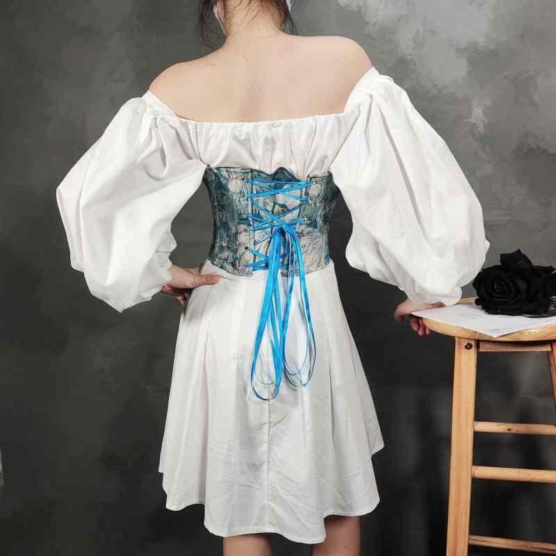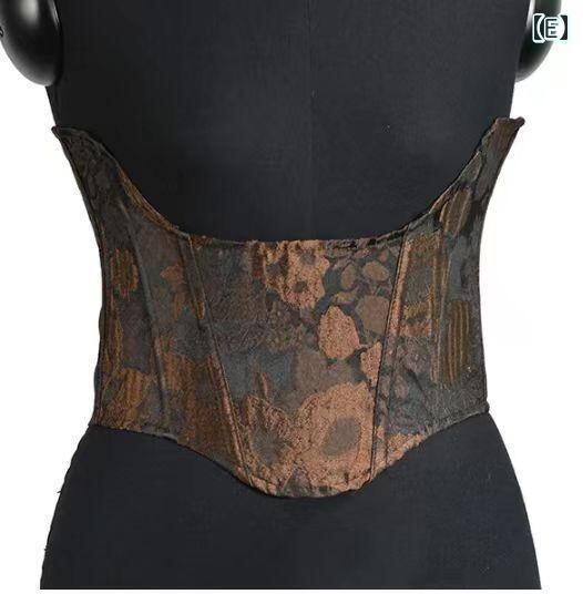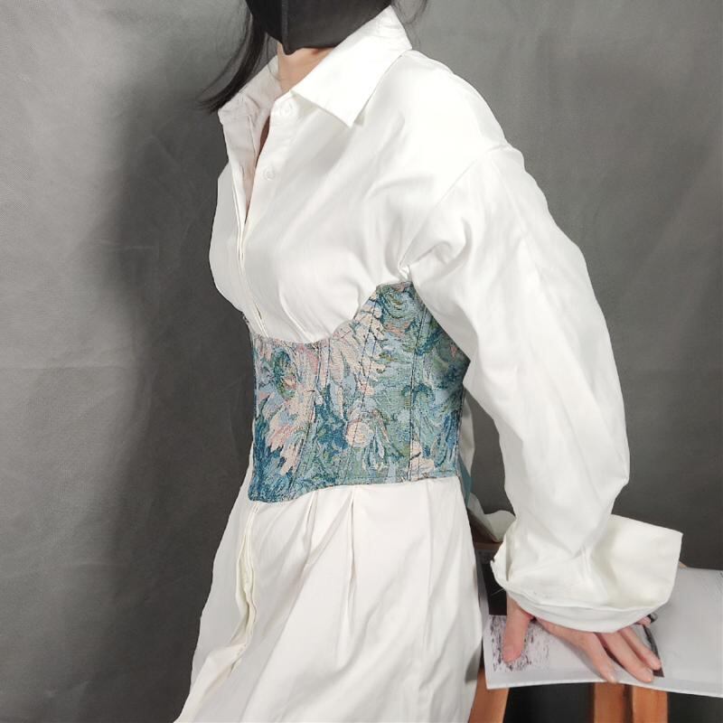 コルセット レディース 女性用 ショート丈 水墨画風 菊柄 色織り ボーン入り レースアップ 編み上げ ウエストシェイプ くびれ スタイルアップ 補正 ポリエステル製 オールシーズン ファッション