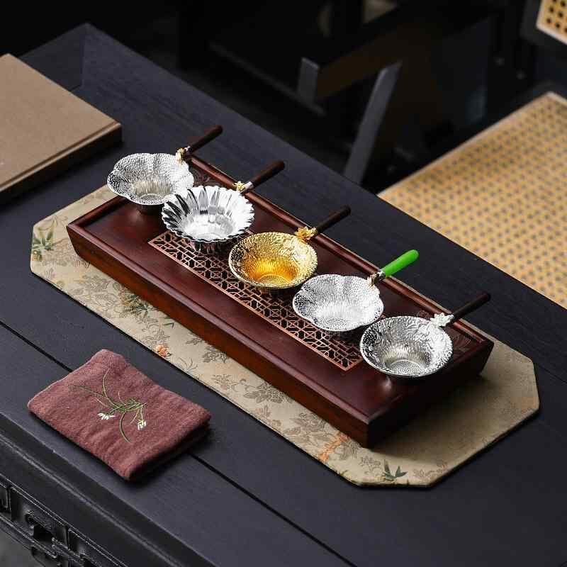 茶こし スズ合金製 槌目模様 蓮モチーフ 金魚 ミツバチ ポータブル 家庭用 おしゃれ 木製ハンドル モダンチャイニーズスタイル 茶器 茶道具