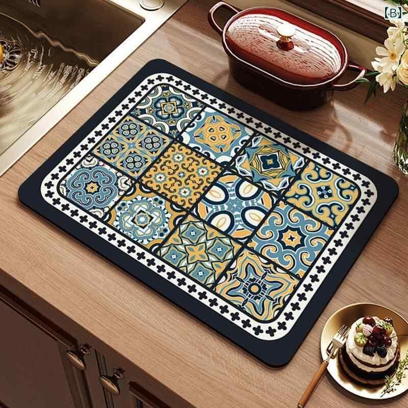 キッチン 珪藻土 吸水マット 水切りマット 蛇口 シンク周り コンロ 作業台 滑り止め 耐熱 ソフト 速乾 ポリエステル 厚手 スクエア 食器 コースター