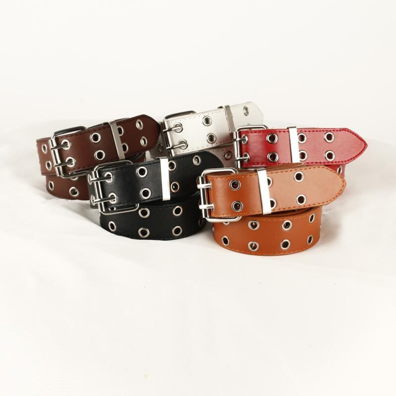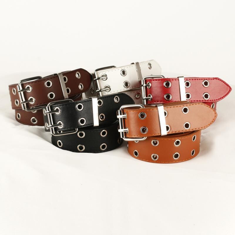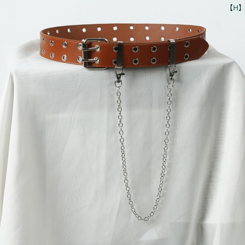 ベルト レディース パンク ストリート ダブルハトメ フェイクレザー 太め 幅広 チェーン装飾 ジーンズ デニム 韓国ファッション 欧米カジュアル 個性派 ファッション小物