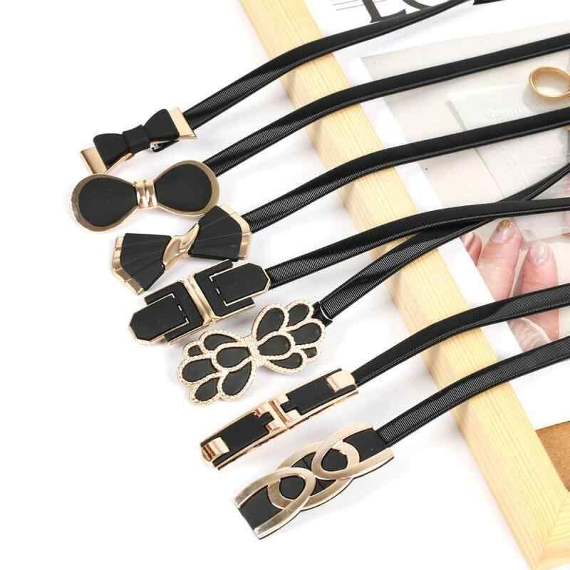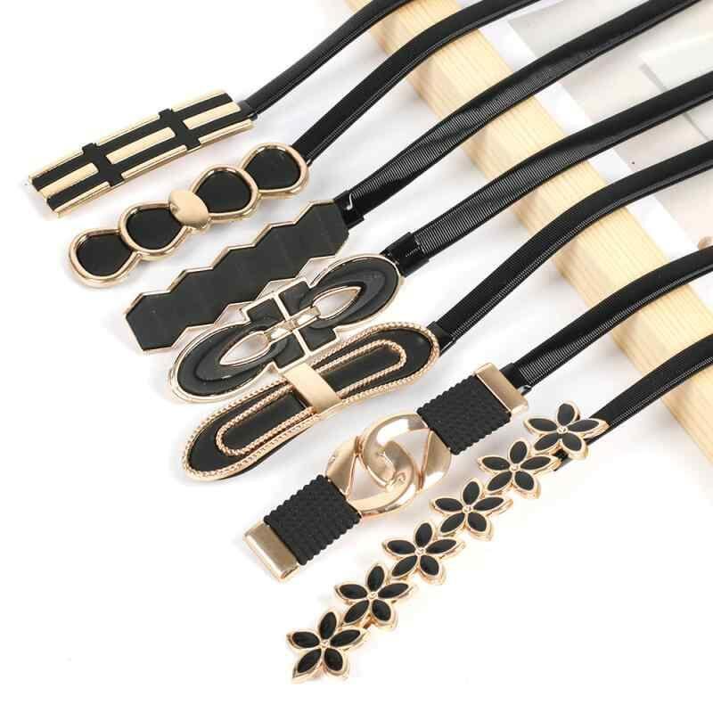 ベルト レディース ブラック メタル ウエストチェーン 伸縮性 ゴム 細身 電気メッキ加工 合金バックル フック式 ワンピース ドレス スカート レトロ フレンチスタイル アクセサリー