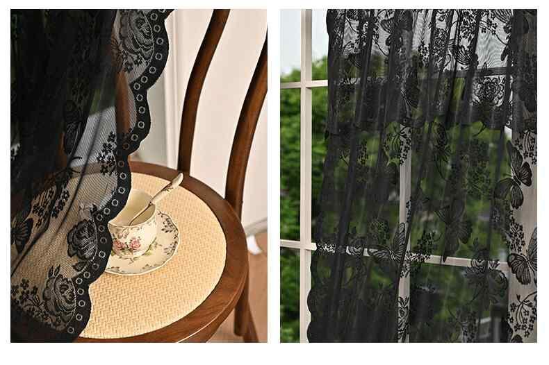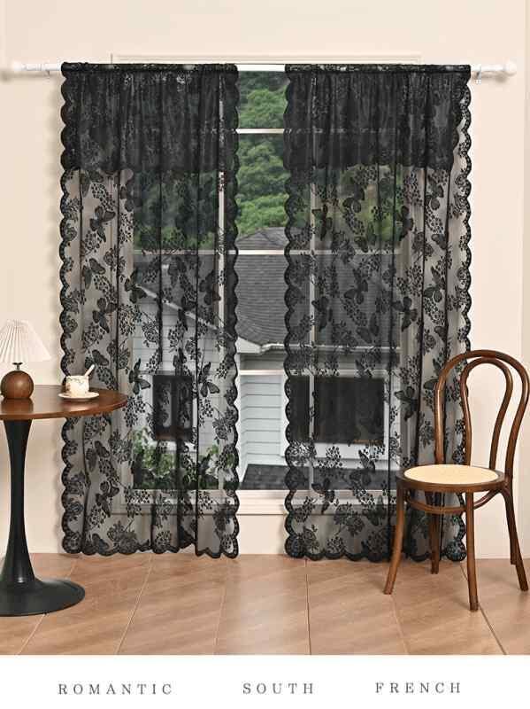 レースカーテン 経編み 蝶々柄 花柄 ボイル ポール通し 半遮光 目隠し 既製 ポリエステル リビング 寝室 モダン シンプル おしゃれ ホワイト ブラック