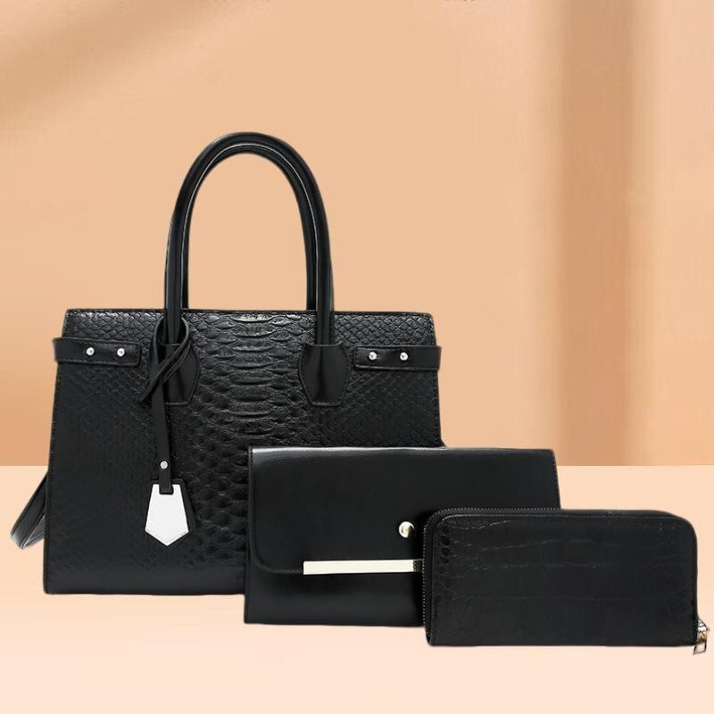 バッグ レディース マザーズ用 クロコ型押し 3点セット 肩掛け 手持ち トート 普段使い カジュアル 通勤 通学 フェイクレザー 合皮 バイカラー 横型 スクエア ブラック コーヒー ブラウン ワインレッド 秋冬