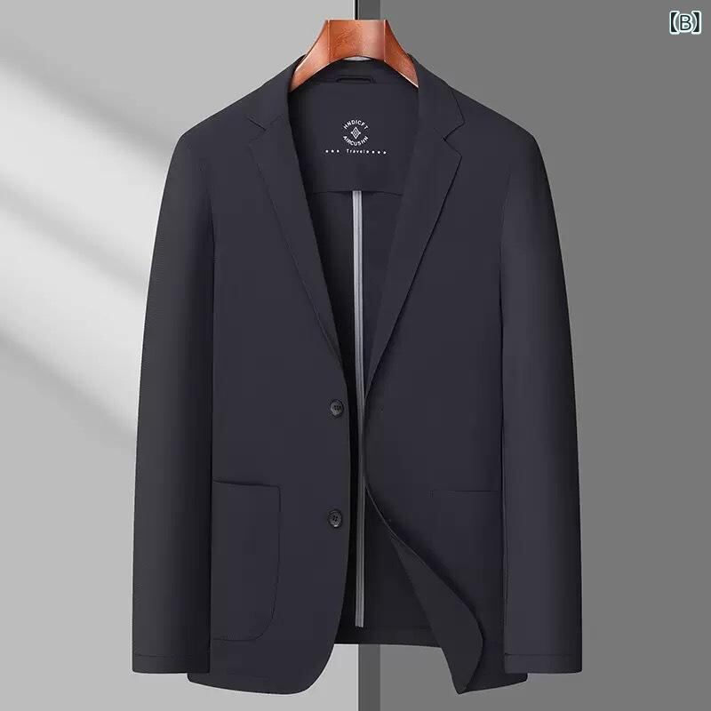ジャケット メンズ 大きいサイズ ゆったり 薄手 長袖 接触冷感 通気性 ストレッチ 形態安定 無地 カジュアル ビジネス テーラード 春夏 ナイロン混