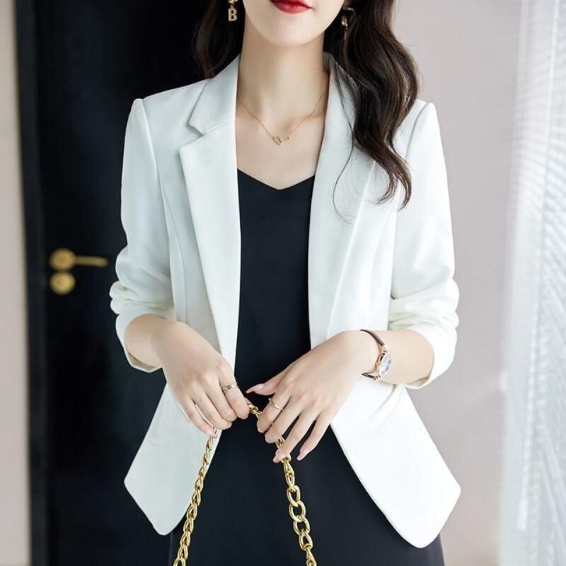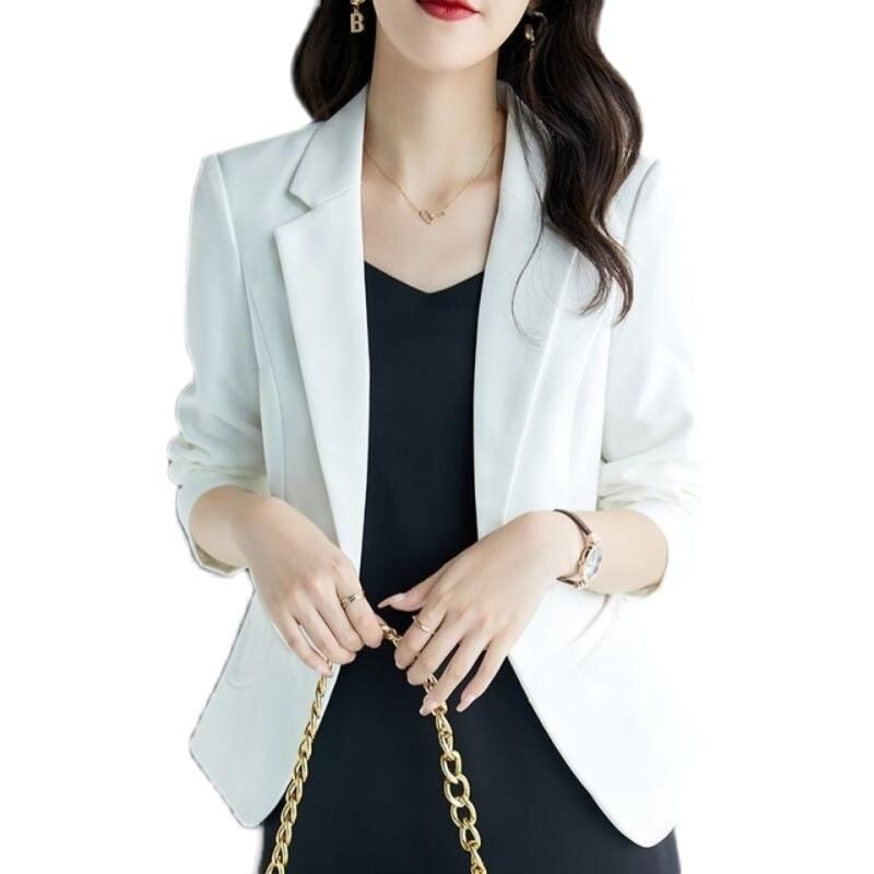 ジャケット レディース 春秋 ショート丈 テーラードジャケット スリム 薄手 七分袖 一つボタン 韓国ファッション きれいめ カジュアル オフィス 通勤 ポリエステル