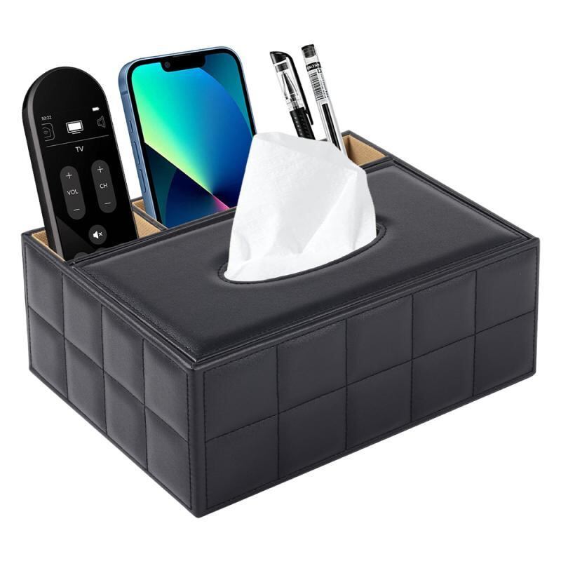 ティッシュケース レザー調 多機能 卓上収納ボックス スマホスタンド リモコンラック 小物入れ 防水 リビング オフィス デスク 車内 玄関 寝室