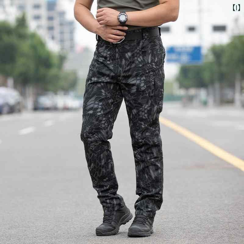 パンツ メンズ タクティカル カーゴパンツ ミリタリー ワークパンツ 防水 丈夫 耐摩耗性 ゆったり ルーズフィット マルチポケット 多機能ポケット ポリエステル 春秋 アウトドア 普段使い ブラック カーキ 迷彩
