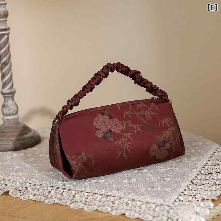 バッグ レディース 新中華風 チャイナドレス風 レトロ クラウドバッグ シルク 高級感 チェーンショルダー 斜め掛け ハンドバッグ 普段使い オーバル型 鞄