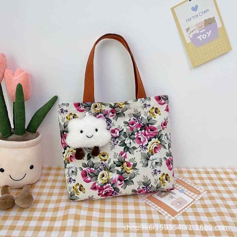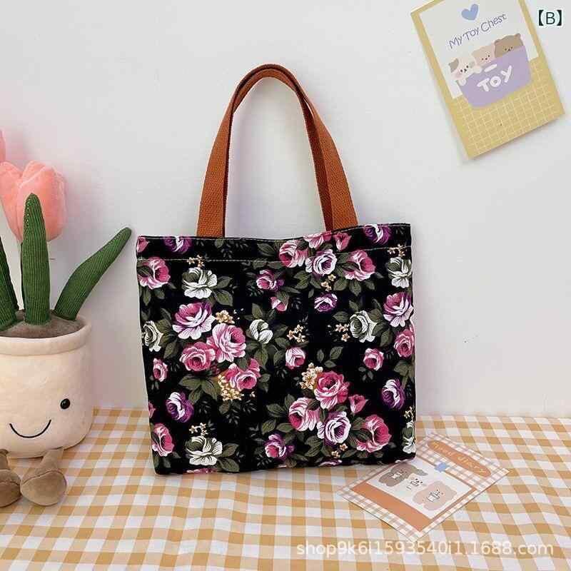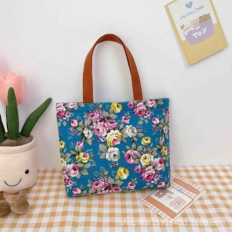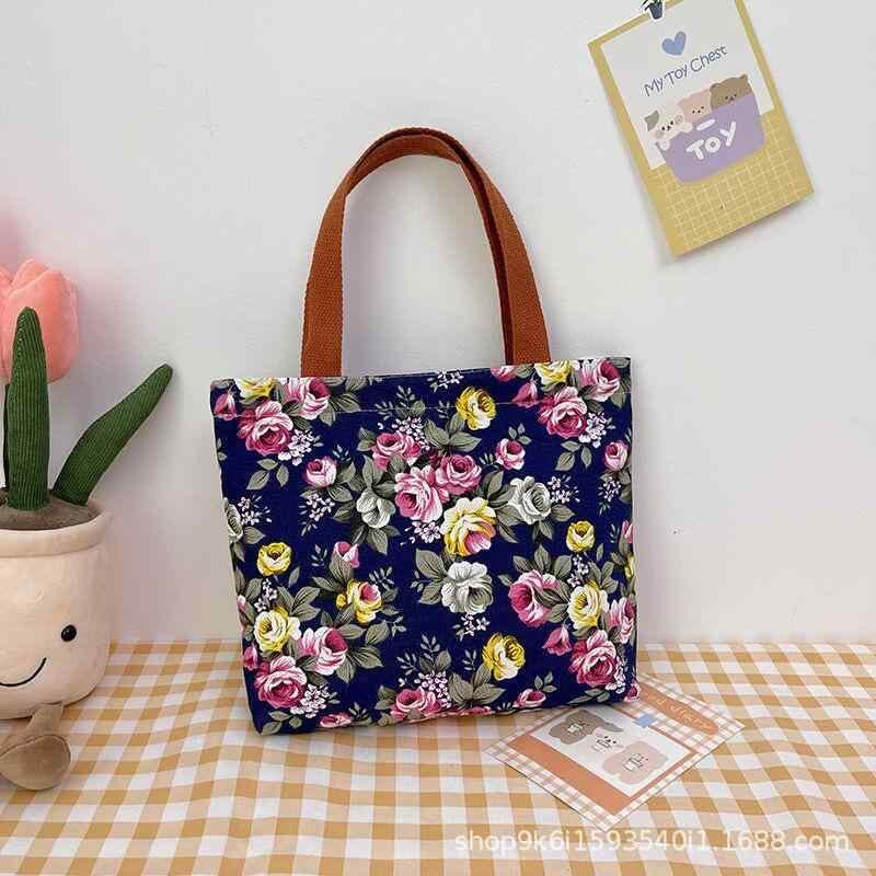 バッグ レディース 女性用 花柄 プリント キャンバス 帆布 ハンドバッグ 手提げバッグ おしゃれ ファッション レトロ ヴィンテージ マザーズバッグ 通勤 通学 お出かけ 普段使い カジュアル 旅行 横型 スクエア ファスナー ソフト 軽量