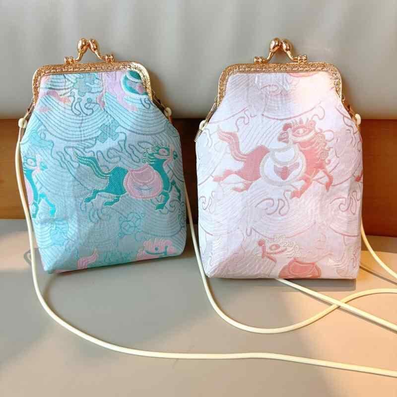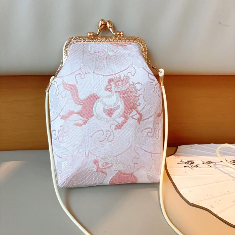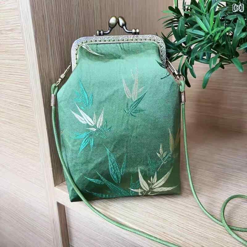 バッグ レディース 新中華風 レトロ 旗袍モチーフ 馬面柄 刺繍 斜め掛け スマホ 小銭入れ がま口 絹 シルク 都会的 シンプル 縦型 スクエア 軽量 コンパクト お出かけ 普段使い デイリーユース 鞄