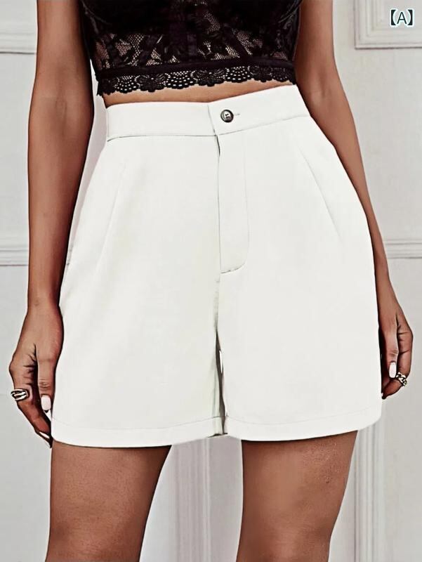 ショートパンツ レディース 女性用 ハイウエスト ワイド カジュアル ハーフ丈 リラックス 快適 ポリエステル 微ストレッチ ポケット 普段使い お出かけ 春夏