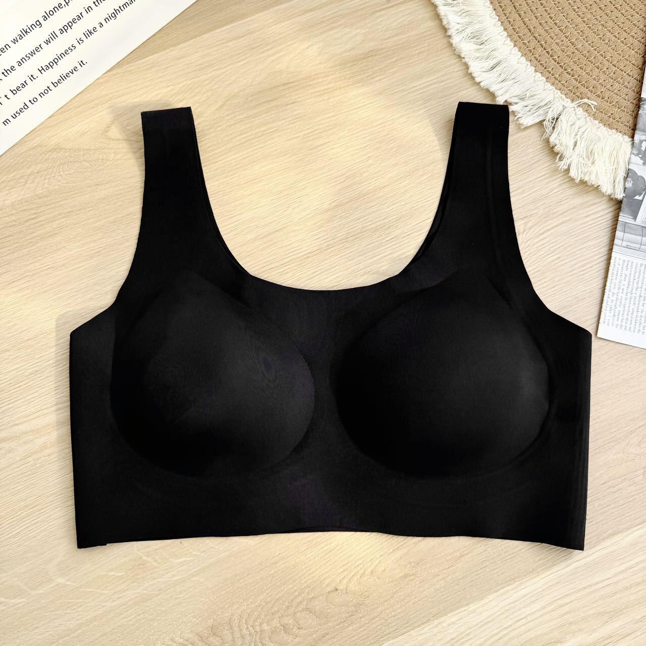 ブラジャー レディース 胸を小さく見せる ノンワイヤー シームレス スポーツブラ 夏用 薄手 軽い着け心地 通気性 美背 脇高 脇肉補正 快適 ホールド感 コットン 3/4カップ スキンカラー シャンパンホワイト ブラック 普段使い 部屋着