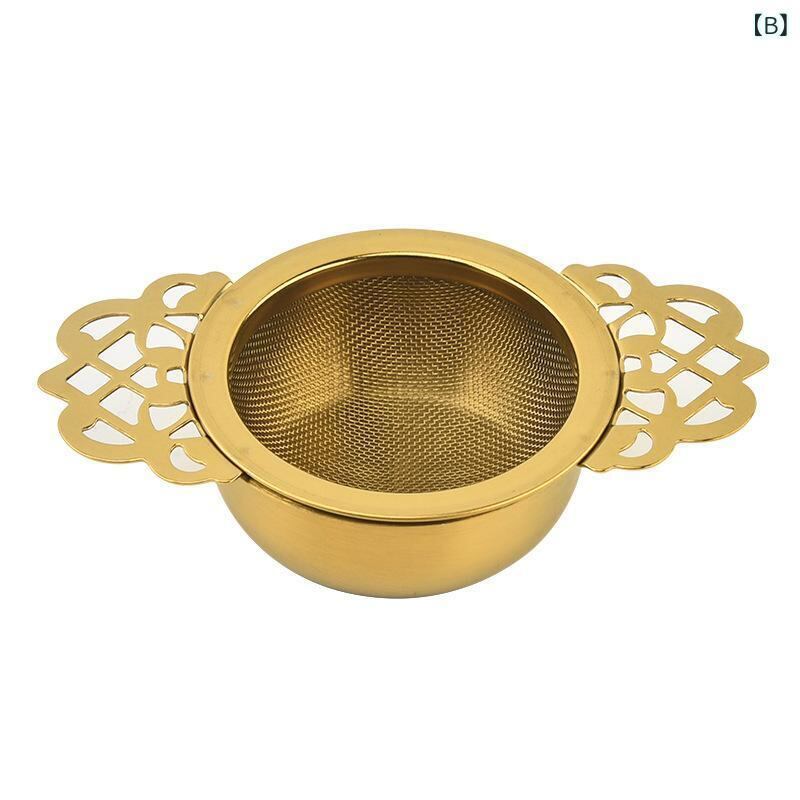 茶こし 304ステンレス 両耳 取っ手付き レース フリル 茶葉用フィルター ティータイム 紅茶 緑茶 ハーブティー ろ過網 ストレーナー 原色 金色 シンプル モダン