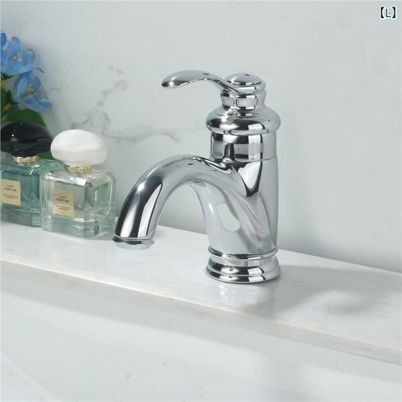 洗面器用混合水栓 ヨーロピアン レトロ クラシック アンティーク調 ゴールド 金色 真鍮製 2ハンドル 台付 冷温水対応 洗面台 蛇口